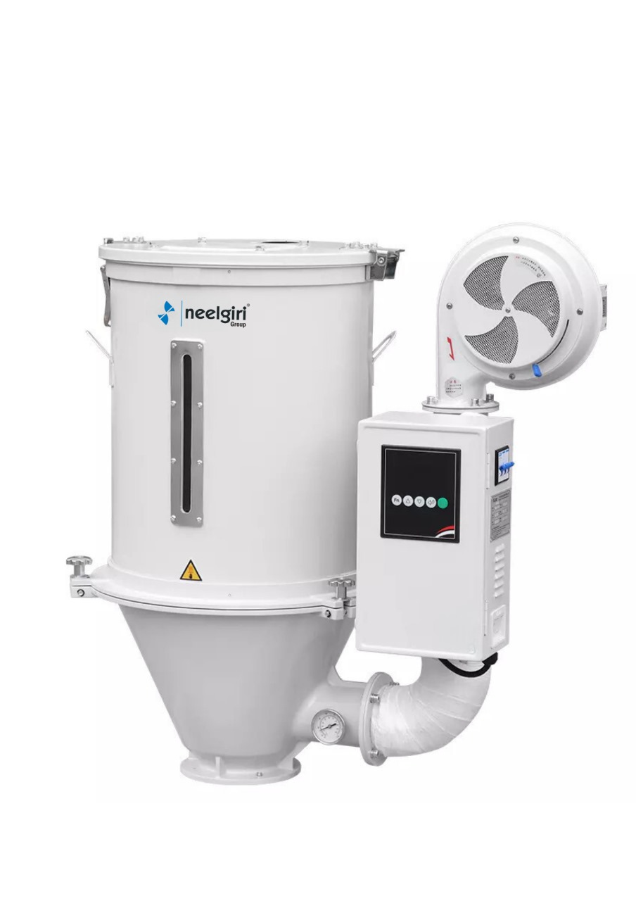Neelgiri Machinery offers options to customize the Hopper Dryer according to specific requirements, including a magnetic base or a normal base with a transparent window, enabling seamless integration into existing production setups.