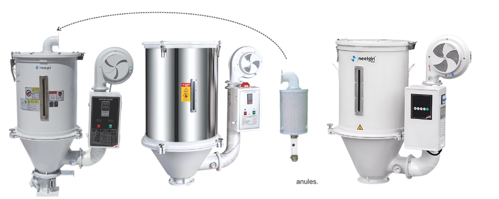 Ensuring effective drying of plastic granules is crucial for achieving high-quality results in injection molding processes. Neelgiri Machinery’s Hopper Dryer represents the pinnacle of drying technology, designed to provide exceptional performance and convenience.