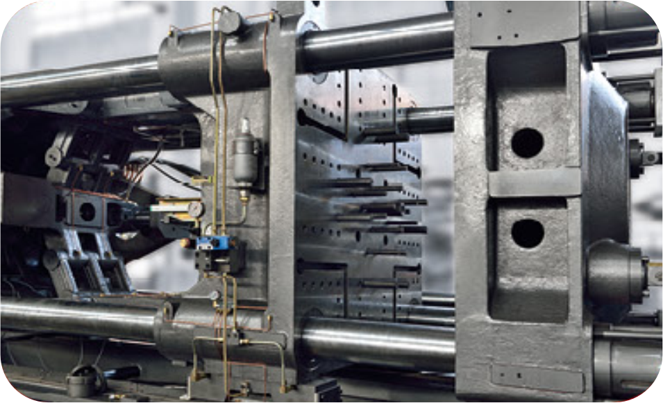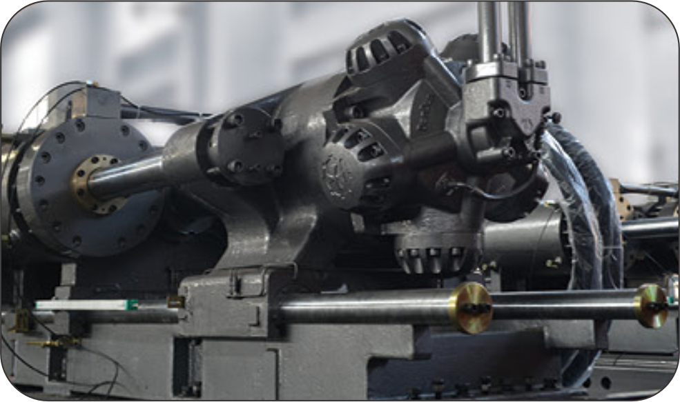 The robust clamping unit features a newly strengthened locking unit with a double-toggle, five-joint clamping system, ensuring high rigidity, reliable strength, and stable movement, even at high speeds. The platens incorporate a T-slot structure, enabling fast and efficient mold installation and adjustment facilitated by a hydraulic oil motor drive.
